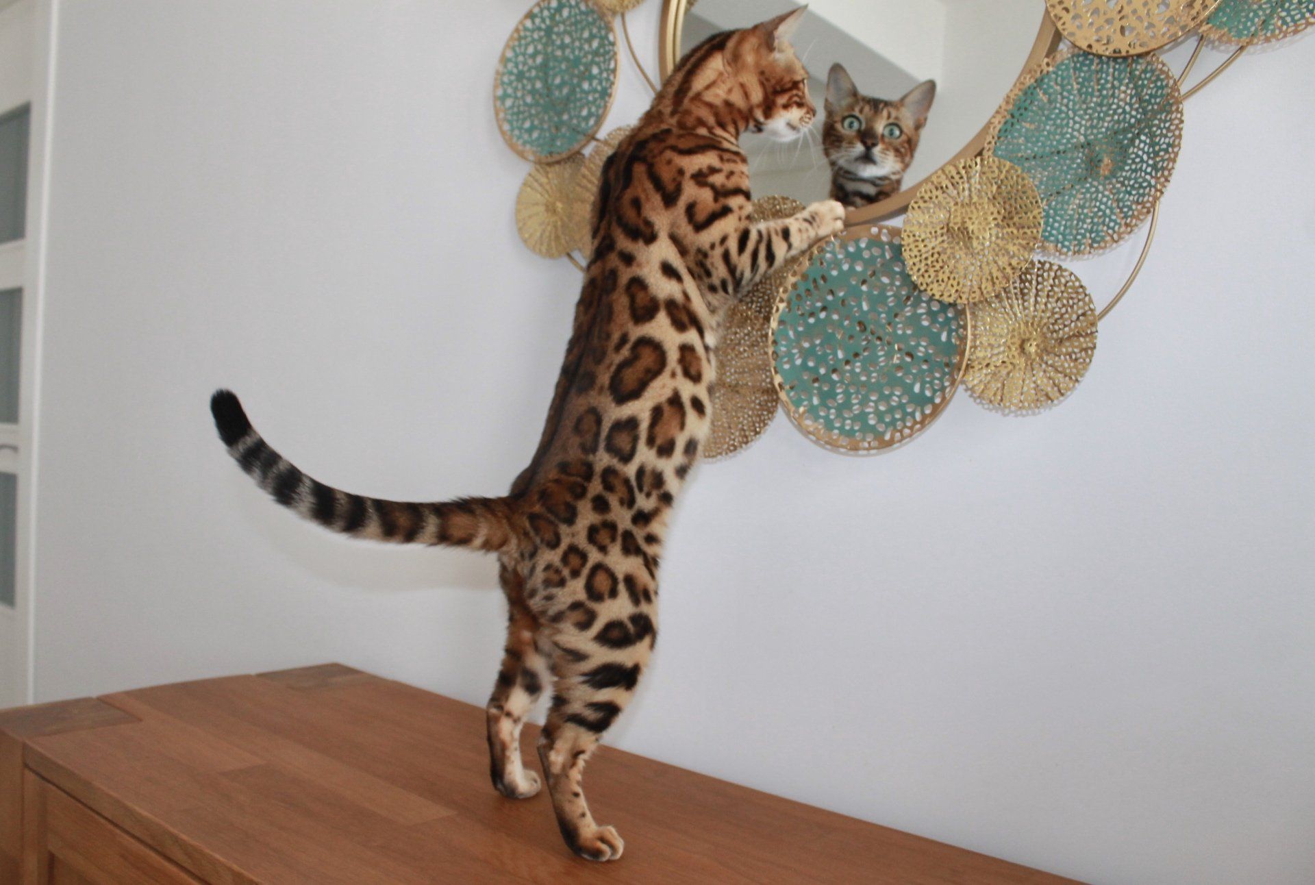 Mivida viene del mismo criadero que nuestra gatita Oreo, ambas vienen de Polonia. Mivida es una gata grande y corpulenta, con unas rosetas grandes, redondas y muy contrastadas. Tiene un fondo muy limpio color mantequilla. El pelo es corto, brilloso y súper sedoso. El carácter es amoroso, dulce y cuidadosa. Al igual que con Oreo, pretendemos mejorar con ella el borde de roseta, obteniendo gatitos más contrastados y con un borde de roseta más perfilado. Queremos agradecerma su criadora Wojciech Edyta por confiar en nosotros.