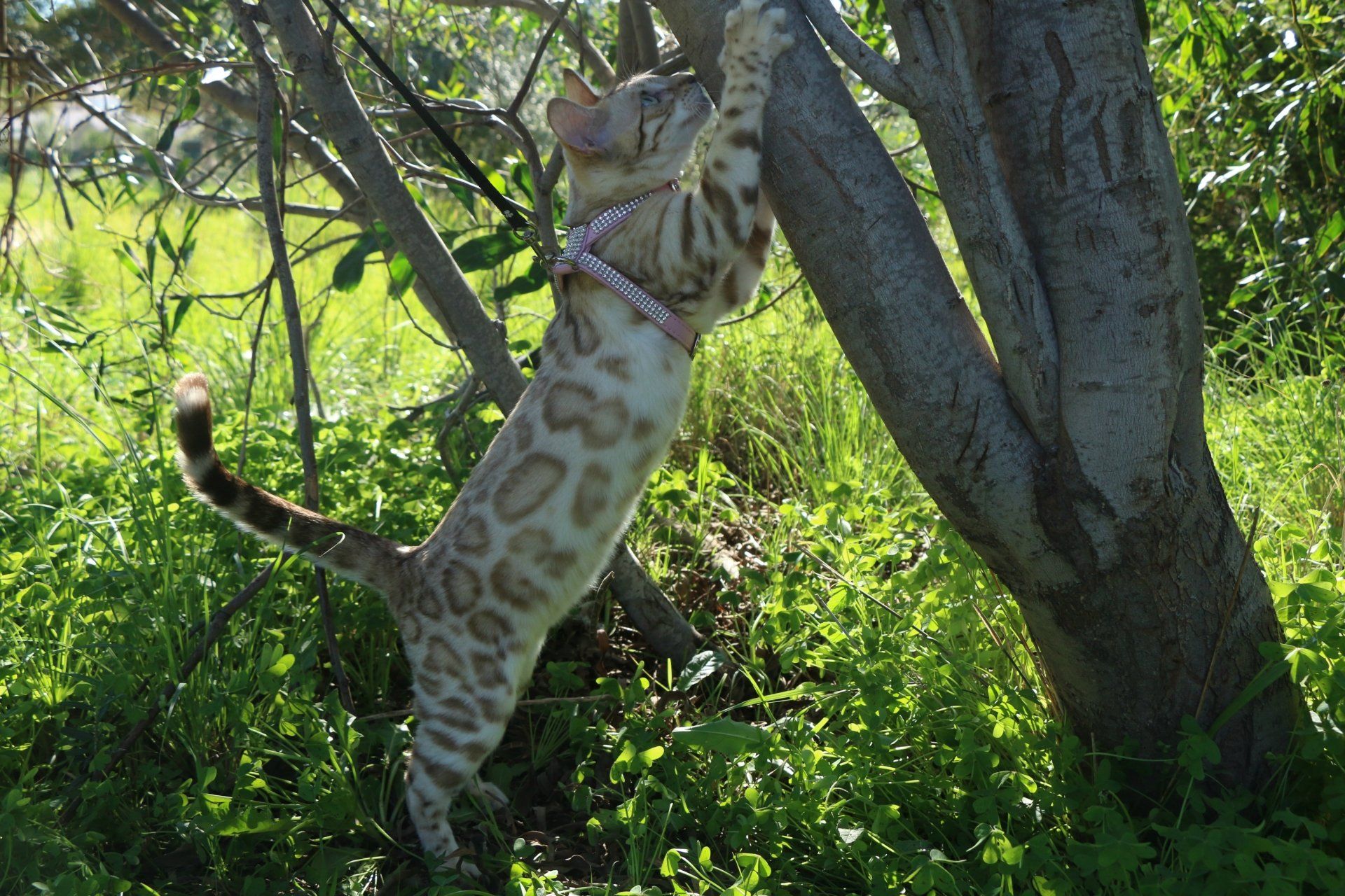 Indiana es sin duda, la gatita con aspecto más salvaje que tenemos, empezando por su mirada, hasta llegar a su cuerpo y la forma de caminar. Ella también es Hija de Bali y Lume, al igual que su hermana Evolet. Es una gata de gran tamaño, cuerpo muy musculoso, pelo extra corto, pegado al cuerpo y super brillante. De mirada impactante, orejas pequeñas y cola muy gruesa. El carácter es todo lo contrario a su aspecto salvaje, es una gatita muy especial!