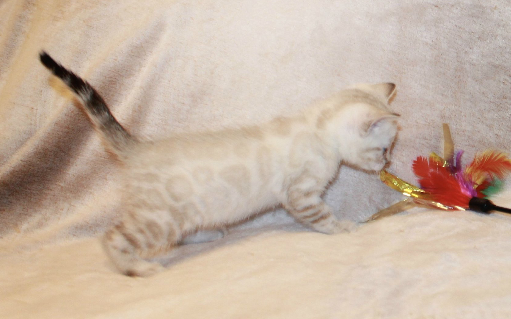 Es el tipo más común de Snow que podemos encontrar. Estos gatitos tienen los ojos color azul, y el manto suele ser muy claro y menos contrastado que los otros tipos de Snow. Estos gatitos nacen completamente blancos, y conforme va pasando el tiempo, sus rosetas van apareciendo y oscureciéndose ligeramente. El bengalí Snow Lynx tiene genes del gato siamés.